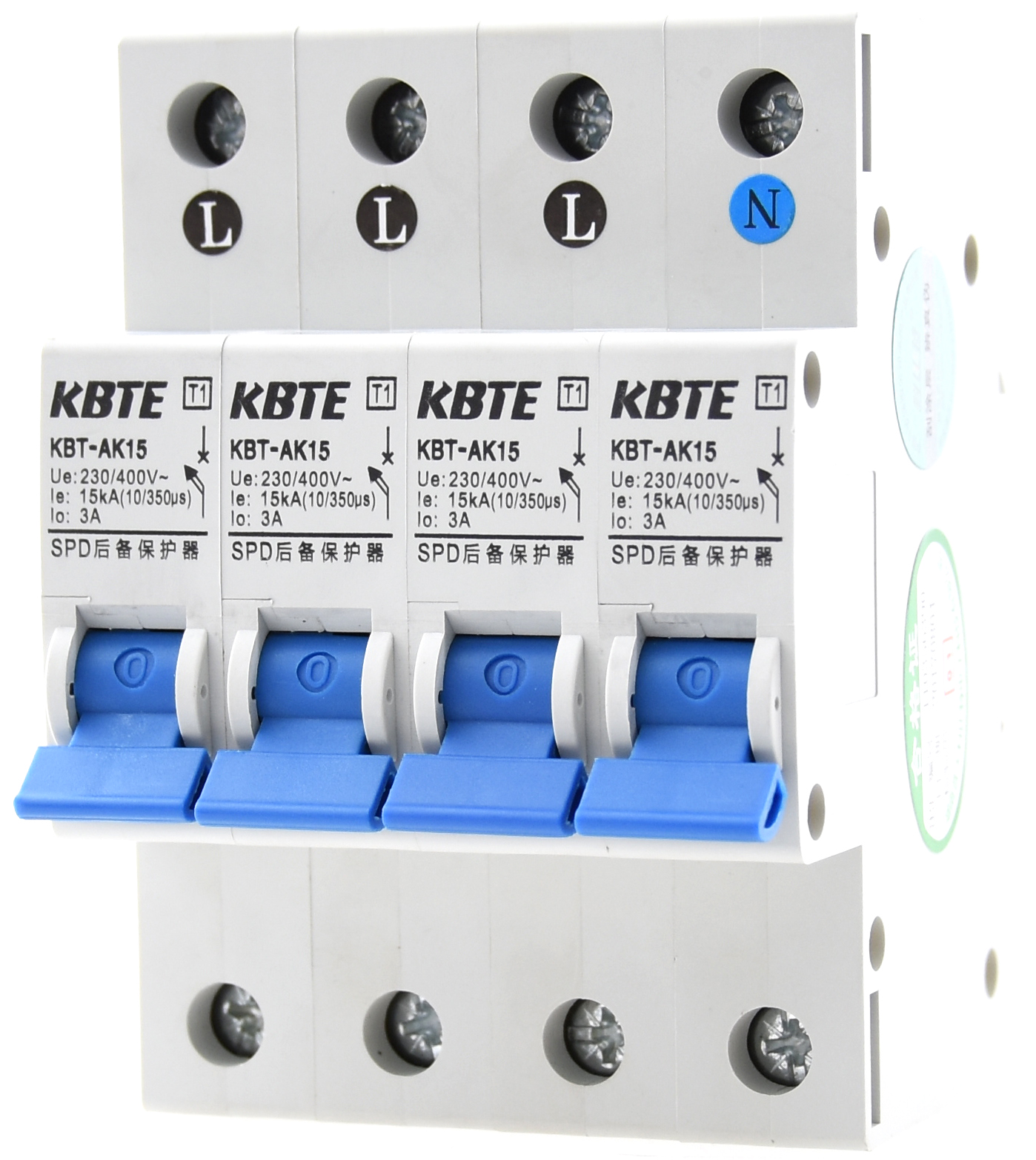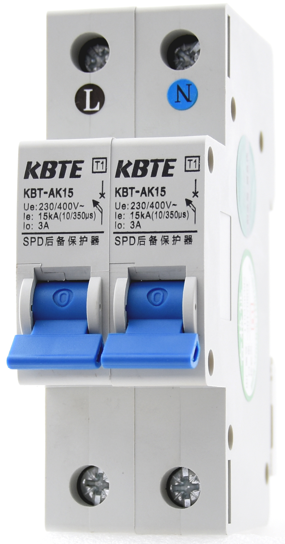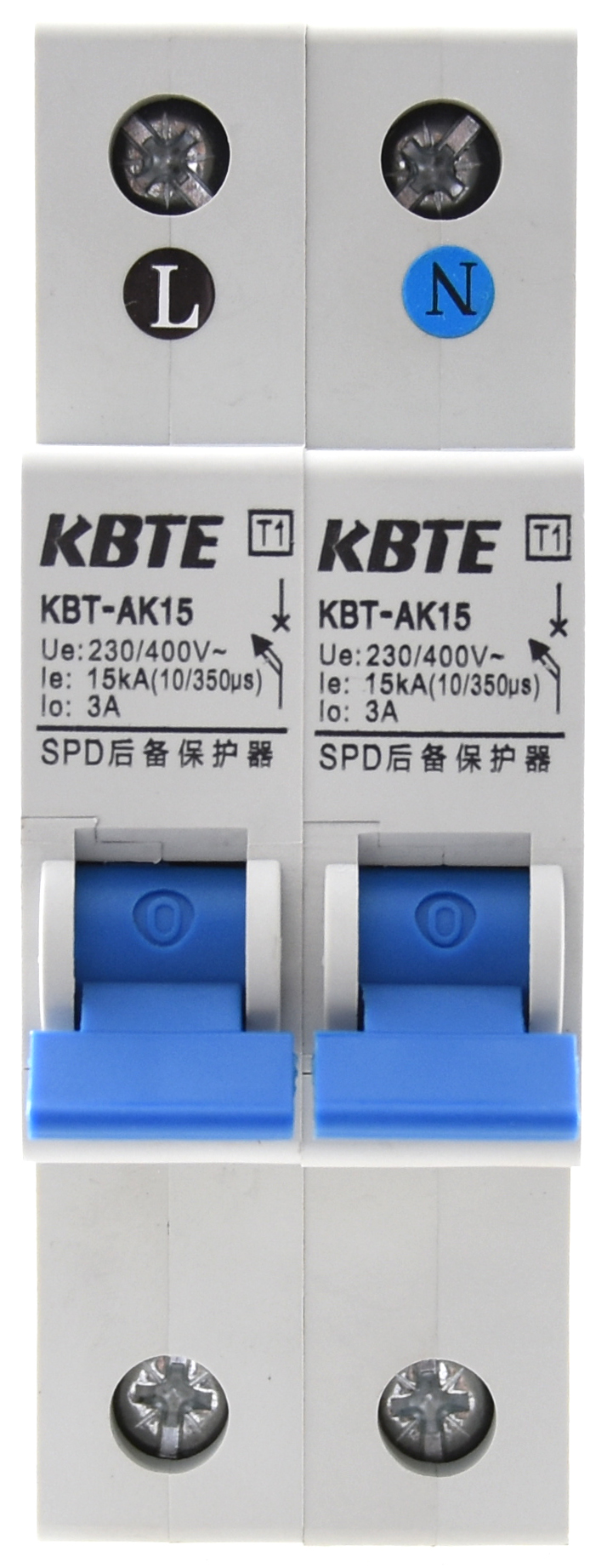 KBT系列SCB后备保护器专为电源SPD设计制造,SCB串联在电源SPD的前端,确保在SPD发生故障时小工频电流流过迅速分断SPD与电源线路的连接,保证SPD不因长时间工频短路起火及用电安全。KBT-AK系列后备保护器匹配Ⅰ级试验(T1)电涌保护器,对 10/350μs 波形的电涌耐受能力最高可达 30kA,用于第一级雷电防护;